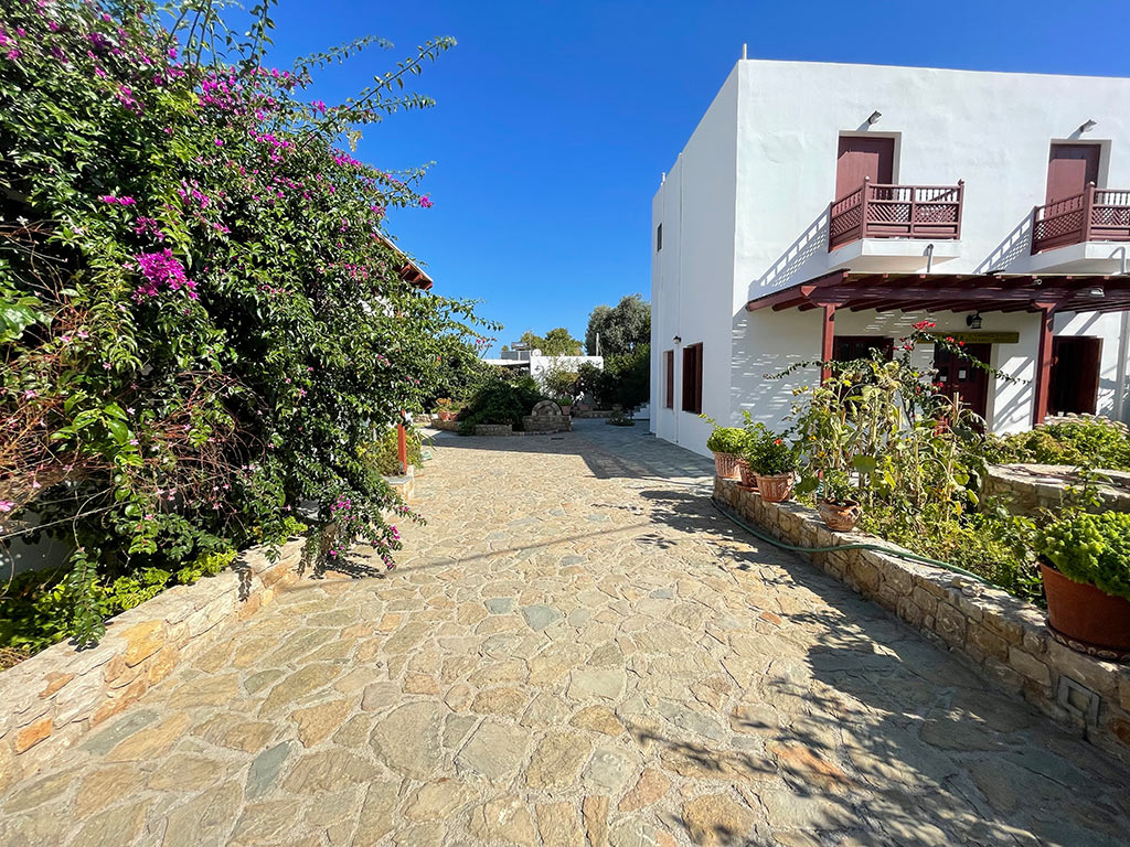 Ebenso steht ein Dreibettzimmer mit einem Doppelbett und einem Einzelbett zur Verfügung. Es verfügt über einen kleinen Balkon mit Blick Richtung Chora.